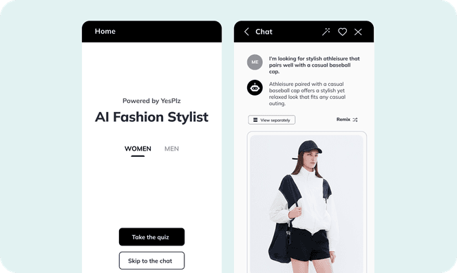 Give every customer a personal stylist. Our AI Stylist is always available, offering tailored advice, styling tips, and curated looks based on your catalog. Stand out from the competition with a unique, interactive AI shopping experience.