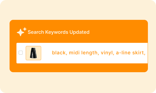 Search terms are automatically added through our AI tagging, using product images to make products easily searchable. No more manual keyword work.