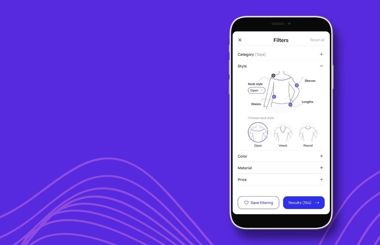 Traditional product filters have remained the status quo in fashion eCommerce for lack of better options. But, as research continues to show, traditional product search filters are falling short in meeting user’s expectations. They’re slow, difficult to use, and don’t provide the type of multi-option, silhouette-focused search that users want.