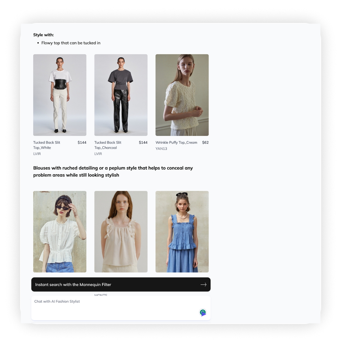 ChatGPT AI Stylist can make suggestions that fit shopper silhouette preferences, and go a step further in suggesting styling ideas.