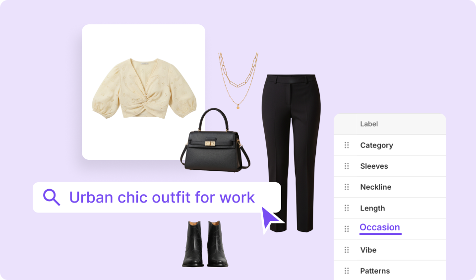Scalable Catalog: Every product gets accurate, consistent tags the moment it's uploaded. AI tagging technology analyzes product images and applies labels for every detailed attribute - trained on Zilo's multi-brand catalog and actual shopper behavior.