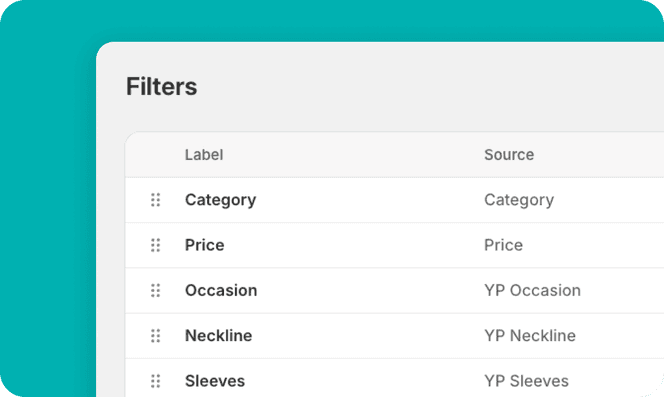 Let shoppers filter by specifics like boatneck, leopard print, or “night out” occasion. Our fashion-trained AI creates and maintains detailed taxonomies, ensuring your filters stay fresh and relevant for every trend.