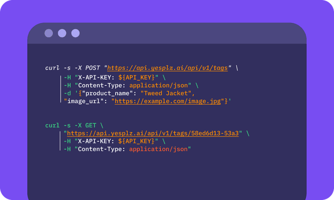 You provide us a product image, we deliver comprehensive fashion taxonomy. Our simple API integrates seamlessly with your existing systems without any website disruption.