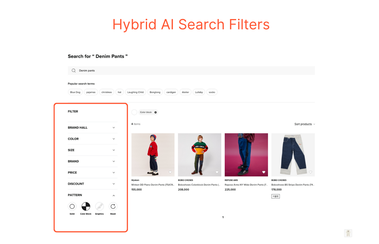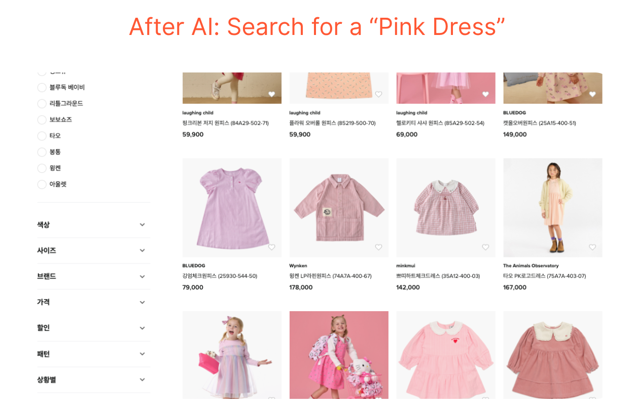 What made this AI search particularly powerful for Looxloo was specialized synonym generation, purpose-built for kids’ fashion vocabulary. It allowed shoppers to locate products using natural language, synonyms, and visual cues, eliminating the frustration of having to type exact product names.