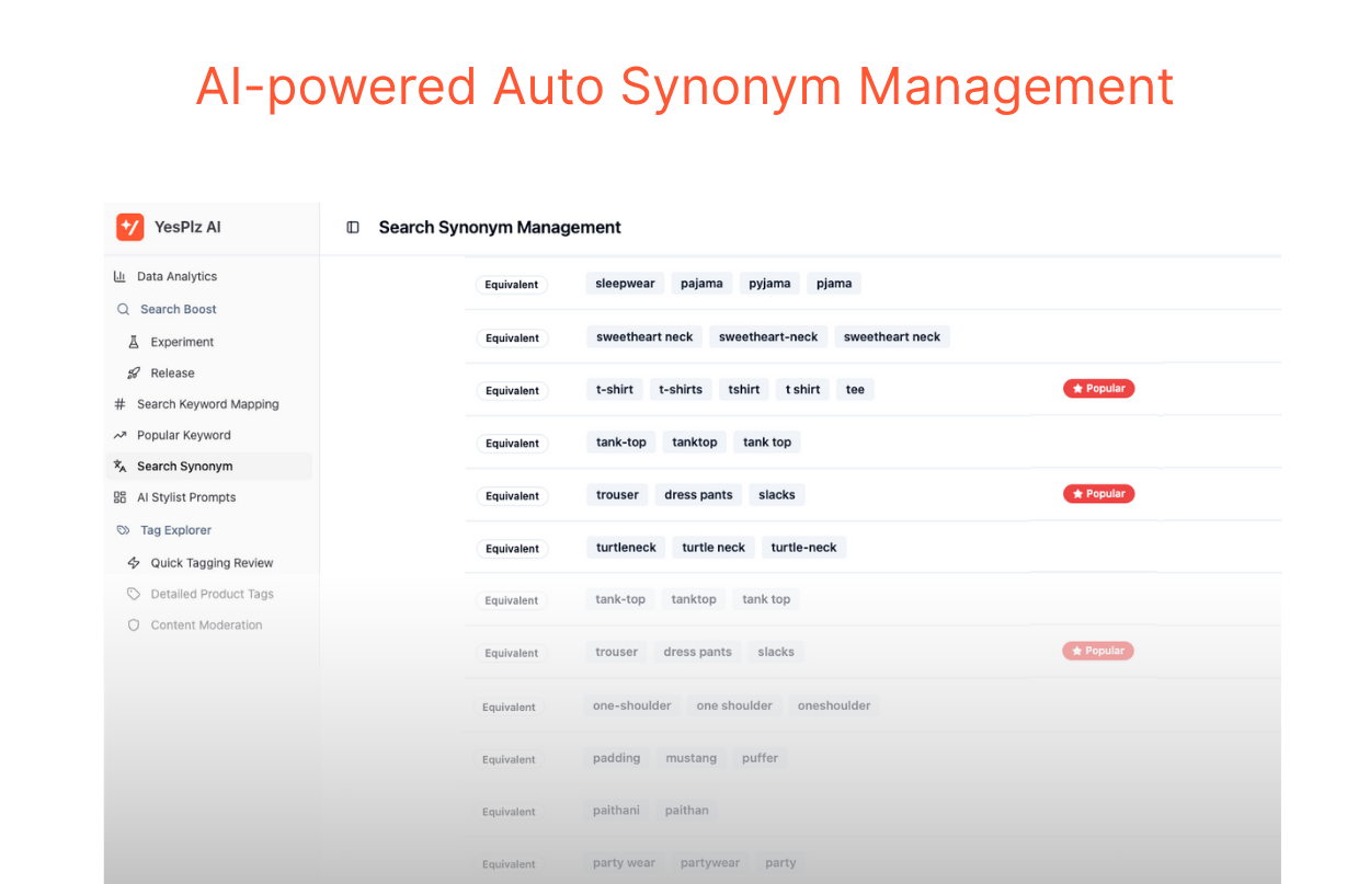 Automatic search keyword optimization: AI handles synonyms, typos, and popular keywords
