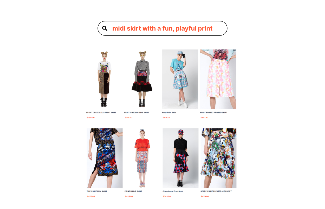 A shopper lands on your website and navigates to the search bar. She wants a skirt with mid-length and a fun, playful print. When she types in her search query for ‘midi skirt with a fun, playful print,’ she receives dozens of relevant search results. The building blocks of these search results are fashion tags, powered by image tagging.