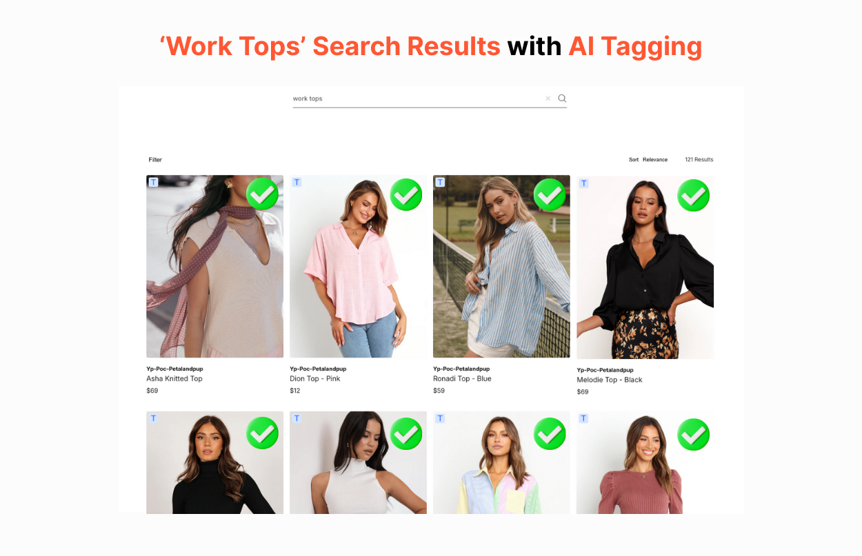 Our recent study shows that AI tagging improves search matching by 22% and click-through rates by 11%. When products are tagged with rich attributes, shoppers find what they’re looking for faster, browse more confidently, and convert at higher rates.